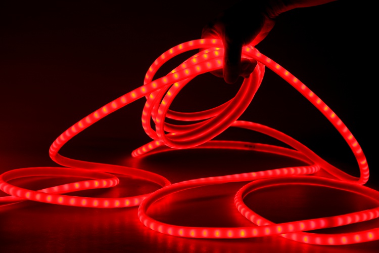 Led Neon Flex Strip Lighting is a modern, flexible design lighting product with a neon effect that glows red continuously. Its sleek and compact structure is made of high-quality flexible materials. It is sleek, compact and soft, easy to store and transport, and the light output is uniform and seamless.